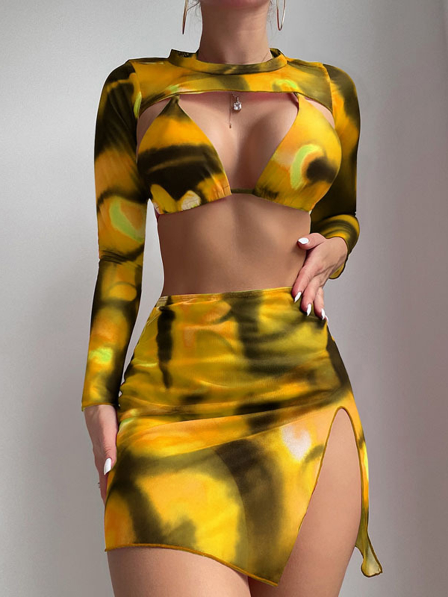 2025 Print 4 Pieces Triangle Halter String Bikini Swimsuit Women Swimwear Female Bathers Bathing Swimming Swim Suit