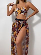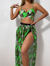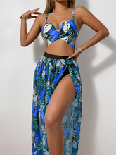 2025 Print Cross Three Piece Vent Long Skirt Bikini Swimsuit Women Swimwear Female Bather Bathing Swimming Swim Suit Beachwear