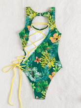 2025 Print Lace Up Back Swimsuit One Piece Solid Swimwear Women Bathing Swimming Suit Female Padded Summer Beachwear Bodysuit