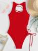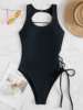 2025 Print Lace Up Back Swimsuit One Piece Solid Swimwear Women Bathing Swimming Suit Female Padded Summer Beachwear Bodysuit