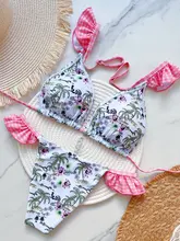 2025 Printed Ruffled Frilled High Cut Bikini Women Swimwear Female Swimsuit Two-pieces Bikini Set Bather Bathing Suit Swim Lady