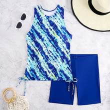 2025 Printed Tankini Set Two Pieces Swimsuit Women Drawstring Swimwear Female & Long knee Shorts Bathing Swimming Swim Suit
