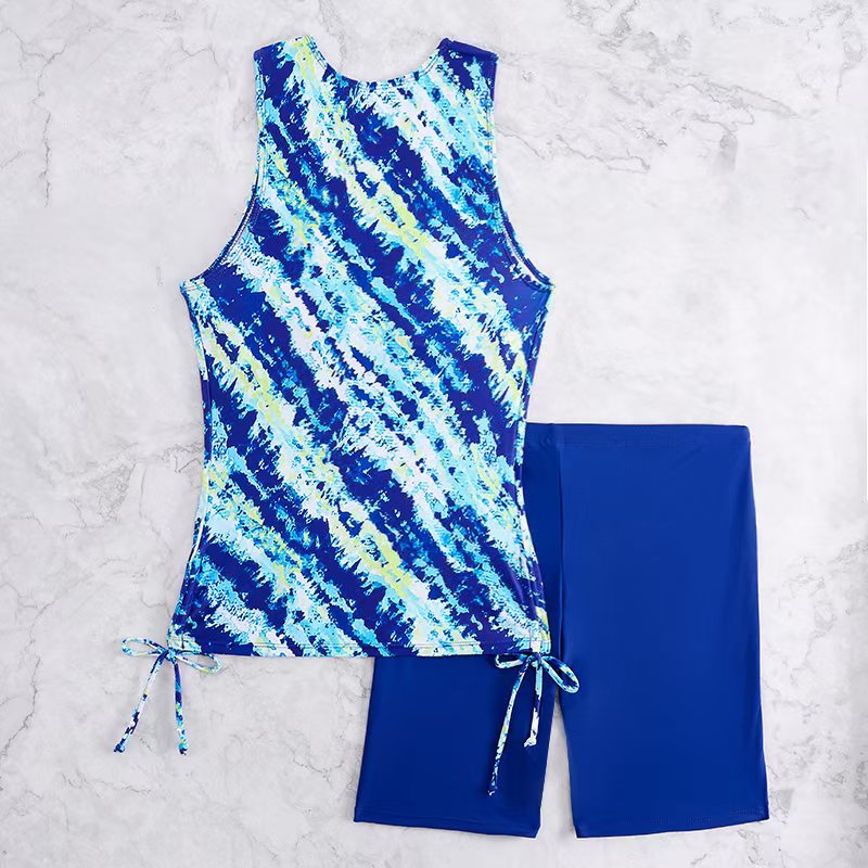 2025 Printed Tankini Set Two Pieces Swimsuit Women Drawstring Swimwear Female & Long knee Shorts Bathing Swimming Swim Suit