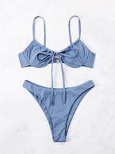 2025 Push Up Bikini Women Rib Tie Front Swimsuit Underwire Swimwear Female Bathers Bathing Swimming Suit Summer Beachwear