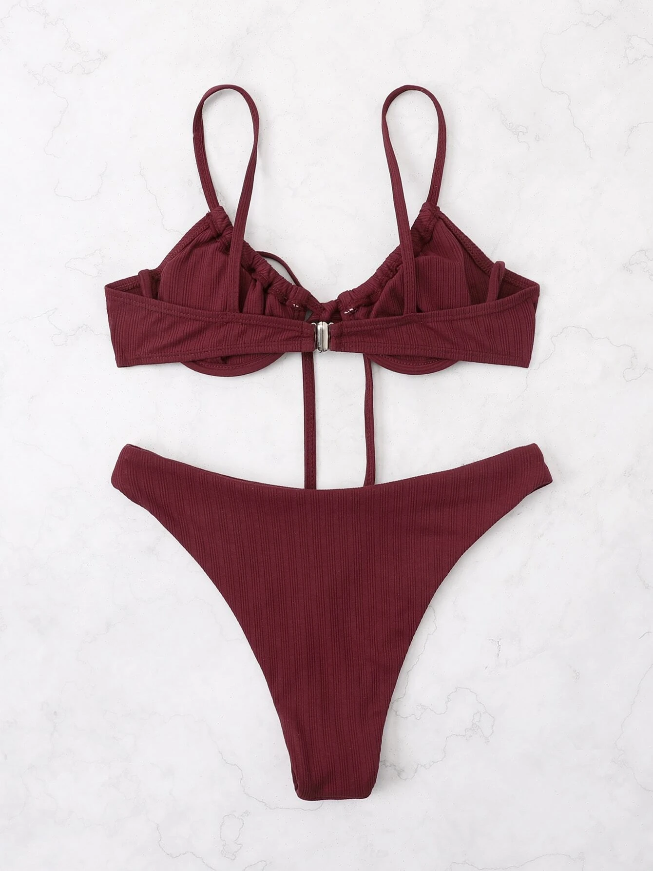 2025 Push Up Bikini Women Rib Tie Front Swimsuit Underwire Swimwear Female Bathers Bathing Swimming Suit Summer Beachwear