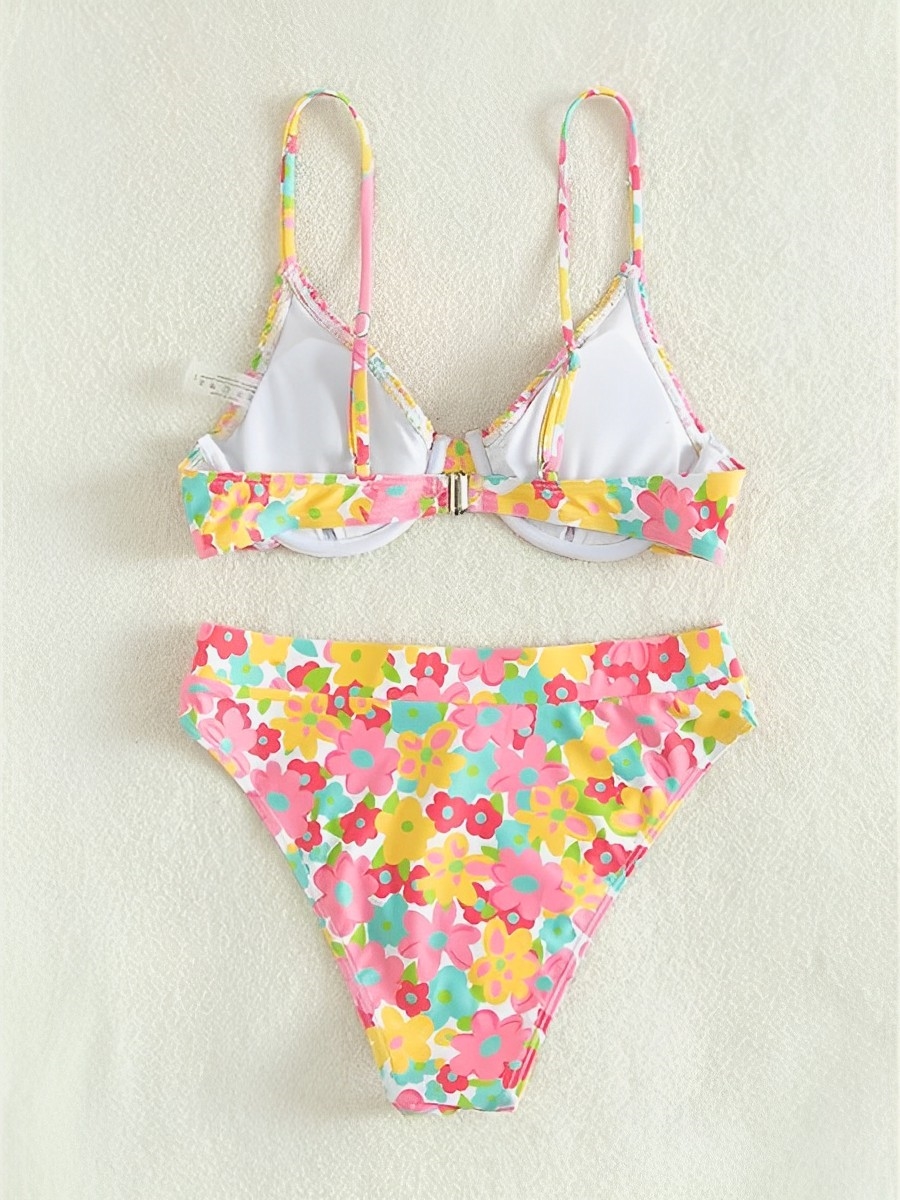 2025 Push Up Floral High Waist Two Piece Bikini Swimsuit Women Swimwear Female Bather Bathing Swimming Swim Suit Beachwear