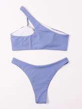 2025 Rib One Shoulder Bikini Set Thong Swimsuit Women Solid Padded Swimwear Female Bathing Suit Swimming Summer Beachwear