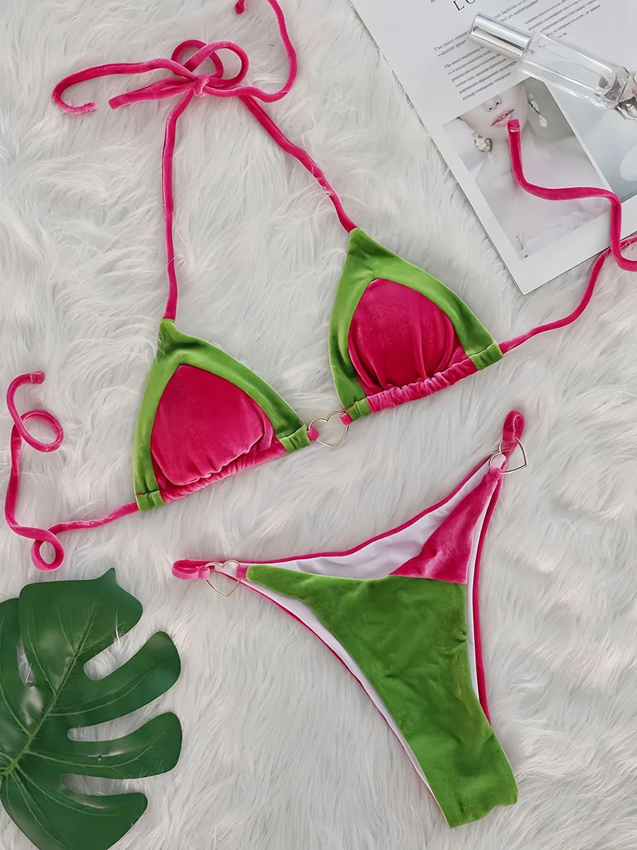2025 Rib One Shoulder Bikini Set Thong Swimsuit Women Solid Padded Swimwear Female Bathing Suit Swimming Summer Beachwear