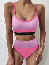 2025 Ribbed Splicing Female Swimsuit High Waist Bikini Women Swimwear Two Piece Bikini Set High Cut Bathing Suit Swim