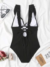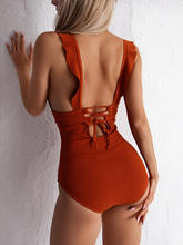 2025 Ruffle Swimsuit One Piece Solid V-neck Backless Swimwear Women Bathing Swimming Swim Suit Female Padded Beach Wear Summer