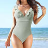 2025 Ruffle Swimsuit One Piece Solid V-neck Backless Swimwear Women Bathing Swimming Swim Suit Female Padded Beach Wear Summer