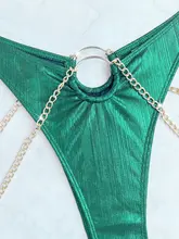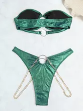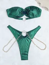 2025 Shiny Bandeau Bikini Women Metal Chains Bikinis Swimwear Female Swimsuit Two Pieces Bikini Set High Cut Bathing Suit Swim