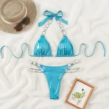 2025 Snake Print Shiny Diamond Bikini Women Swimwear Female Swimsuit Two-pieces Bikini Set High Cut Bathing Suit Swim Beach Wear