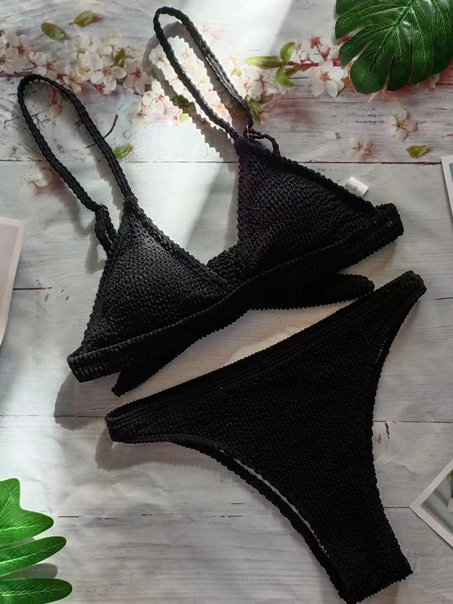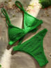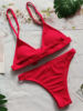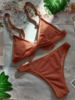 2025 Solid Middle Waist Bikini Ribbed Swimsuit Women Swimwear Female Bather Bathing Swimming Swim Suit Beachwear