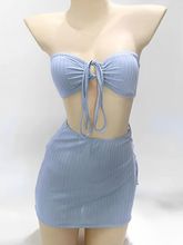 2025 Solid Strapless 3 Piece Hollow Out String Bikini Swimsuit Women Swimwear Female Bather Bathing Swimming Swim Suit Beachwear