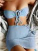 2025 Solid Strapless 3 Piece Hollow Out String Bikini Swimsuit Women Swimwear Female Bather Bathing Swimming Swim Suit Beachwear