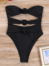 2025 Solid Strapless One Piece Swimsuit Women 3D Rose Hollow Swimwear Female Bathers Bathing Swimming Swim Suit Beachwear