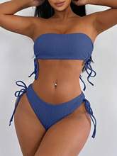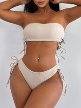 2025 Strapless Bandeau Bikini Drawstring Swimsuit Women Solid Swimwear Female Bathers Bathing Swimming Swim Suit Beachwear