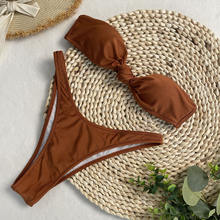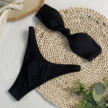 2025 Strapless Bikini Set Solid Thong Two-Piece Swimsuit Low Waist Adjustable Women’s Bathing Suit Beachwear
