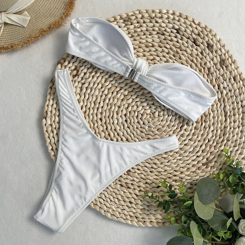 2025 Strapless Bikini Set Solid Thong Two-Piece Swimsuit Low Waist Adjustable Women’s Bathing Suit Beachwear