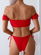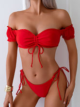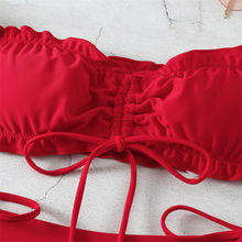 2025 Strapless String Bikini Set Red Swimsuit Women Solid Bandeau Swimwear Female Bathers Bathing Swimming Swim Suit Beachwear