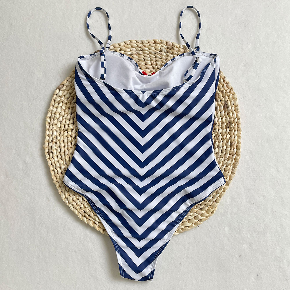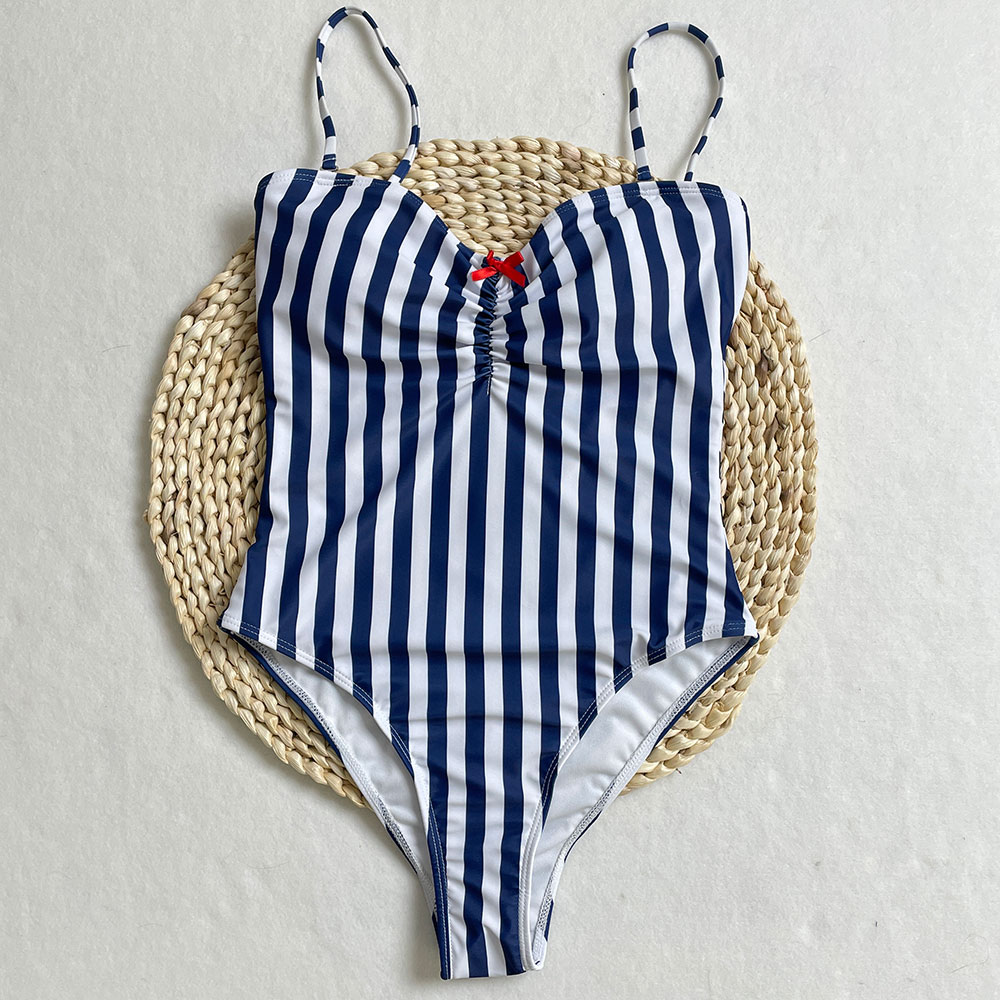 2025 Straps Backless One-Piece Swimsuit Striped Slimming Bikini Set Bathing Suit Women Beachwear Summer