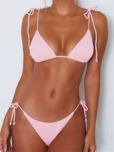 2025 String Bikini Set Trikini Swimsuit Women Solid Swimwear Female Padded Bathers Bathing Swimming Swim Suit Beachwear