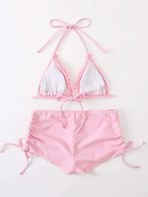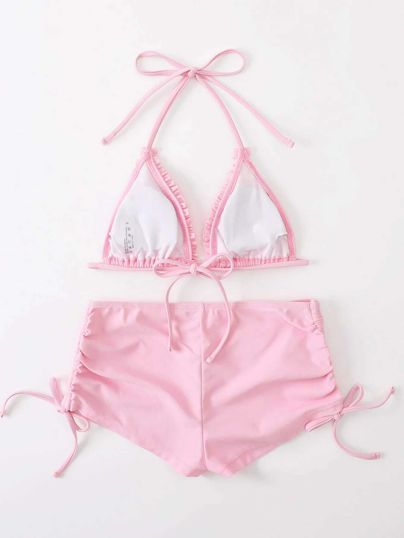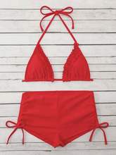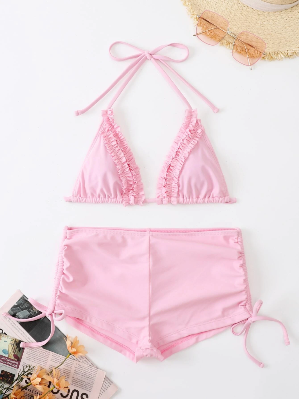 2025 String Swimsuit Women Solid Halter Triangle Bikini High Waist Swimwear Female Ruffle Bathing Suit Swimming Beachwear