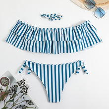 2025 Striped Frill Two Piece Bikini Set String Women Swimwear Female Swimsuit Bathers Bathing Swimming Suit Beachwear Summer
