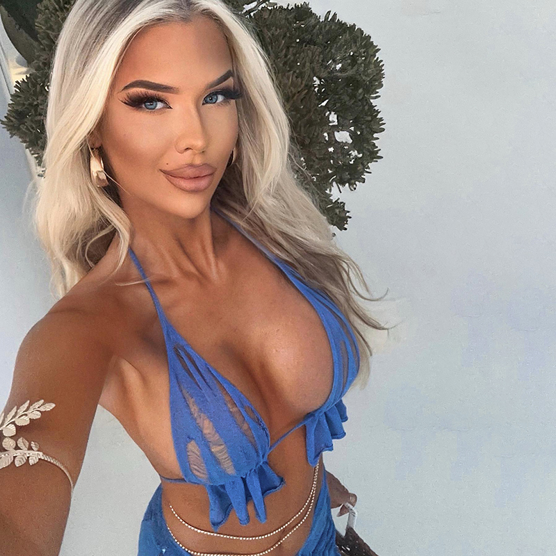 2025 Summer Women’S Hollow Mesh Beah Backless Tops Drawstring Long Skirts Elegant Party Dresses Club Outfits
