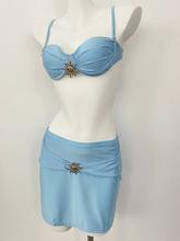 2025 Three-piece Swimwear Push Up Solid Bikini Set with Skirt Cover Up Adjustable Women’s Bathing Suit Beachwear