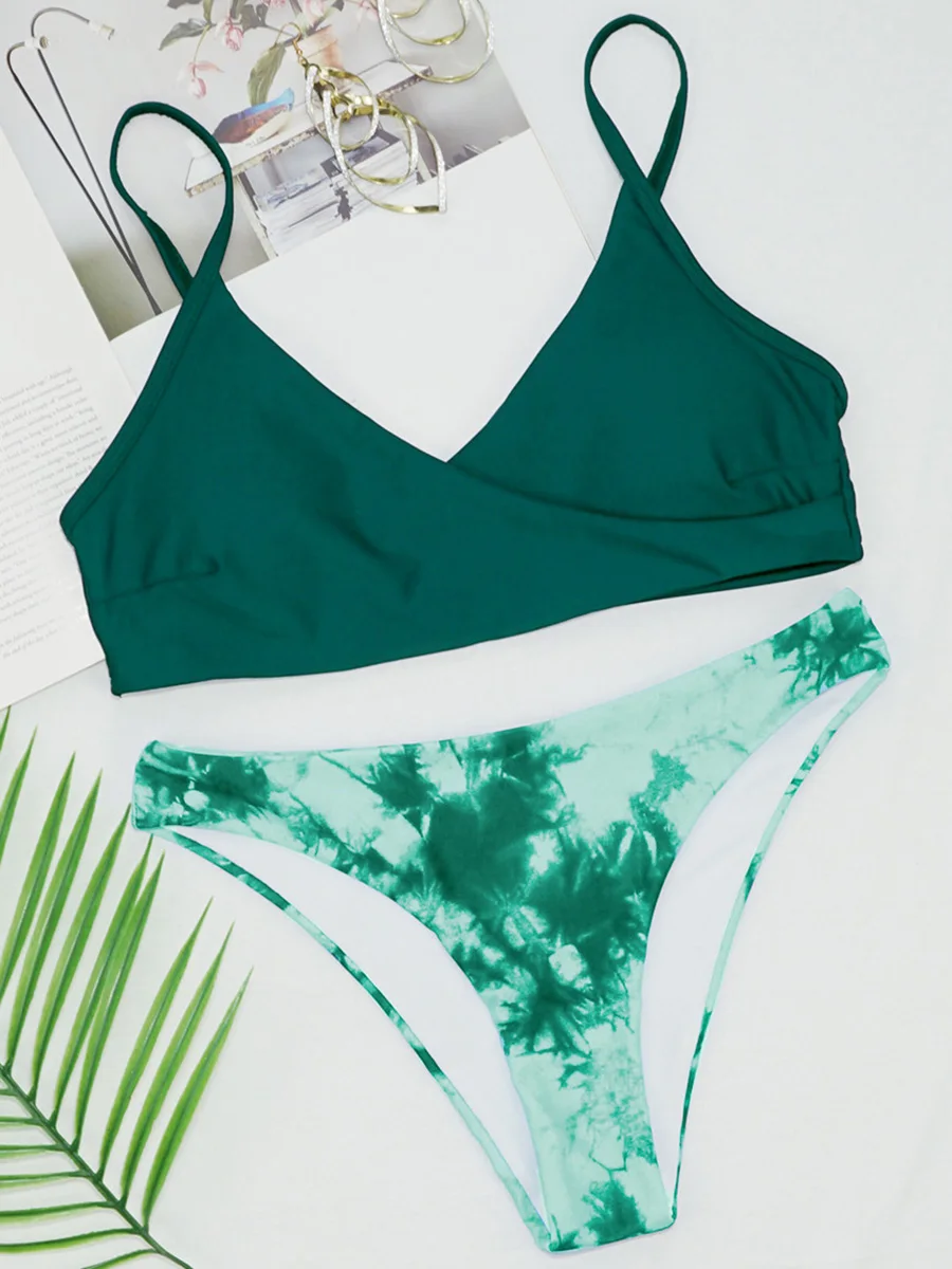 2025 Tie Dye Mid Waist Bikini Female Swimsuit Women Swimwear Two-pieces Bikini Set Push Up Bather Bathing Suit Swim Lady