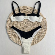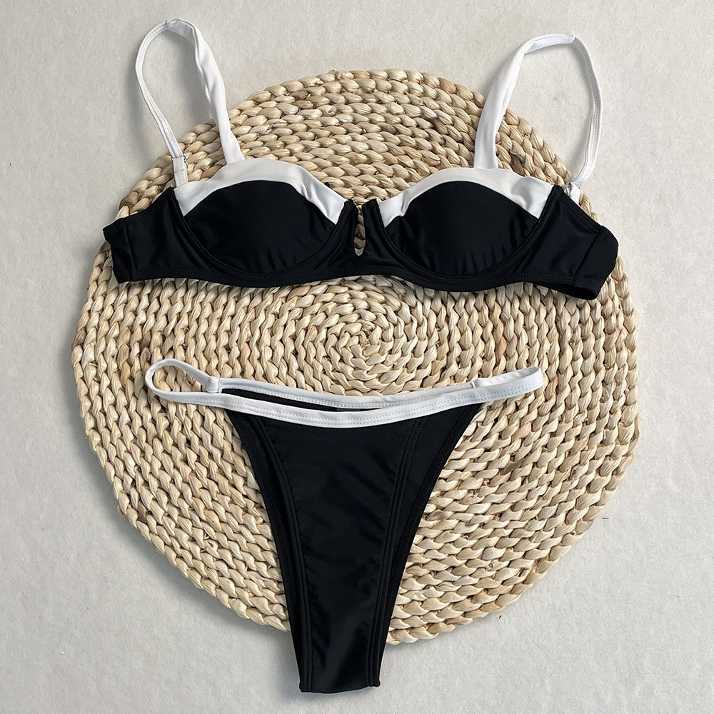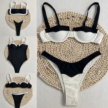 2025 Tight Beach Travel Swimsuit Black and White Patchwork Bikini Set Women Bathing Suit Women Summer