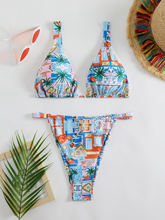 2025 Triangle Thong Bikinis Strappy Swimsuit Women Printed Swimwear Female Bathers Bathing Swimming Swim Suit Beachwear