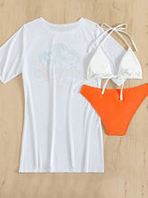 2025 Tropical Print Three Pieces Bikini Set Thong Women Swimsuit with Cover Up Short Sleeve Biquini Swimwear Bathing Suit