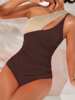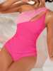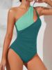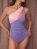 2025 Two Tone One Shoulder Ruched Side Swimsuit One Piece Swimwear Women Bather Bathing Swimming Swim Suit Female Beachwear