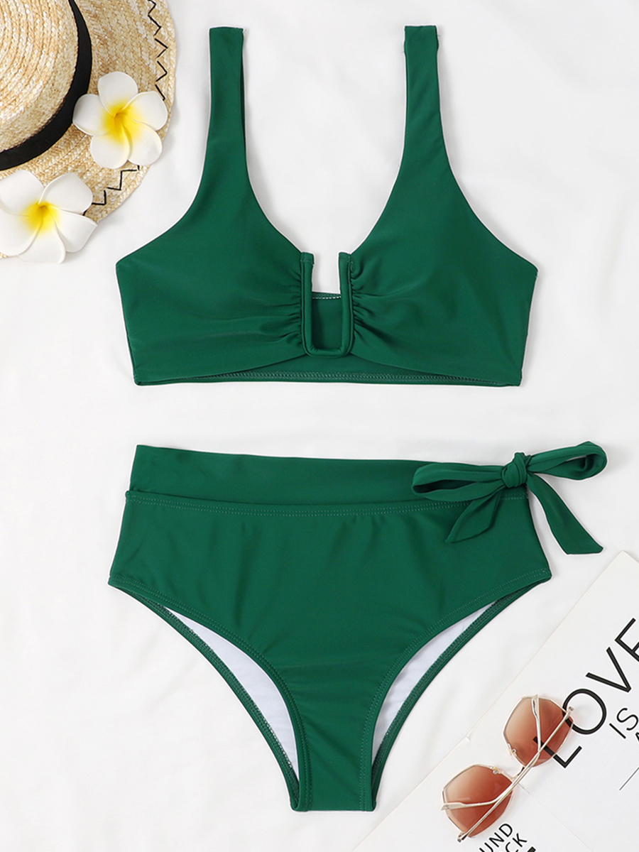 2025 U-wire High Waist Bikini Swimsuit Women High Cut String Swimwear Female Bathers Bathing Swimming Swim Suit Beachwear