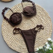 2025 Underwire Micro Bikini Set Solid Bead Two-Piece Swimsuit Thong Split Swimwear Women’s Bathing Suit Summer