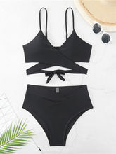 2025 V Neck Cross String Two Piece High Waist Bikini Swimsuit Women Swimwear Female Bather Bathing Swimming Swim Suit Beachwear