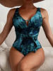 2025 V-neck One Piece Swimsuit Women Printed Swimwear Female Beachwear Bathers Bathing Swimming Swim Suit