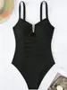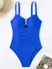 2025 V Neck Pleated Swimsuits Female Swimwear One Piece Swimsuit Women High Cut Bather Bathing Suit Swim Beachwear Slim Bodysuit