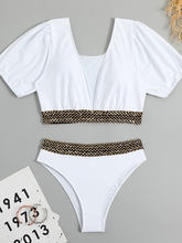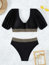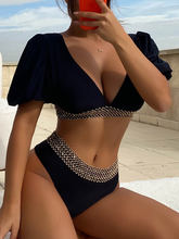 2025 V-neck Short Sleeve Tankini Swimsuit Women High Waist Swimwear Female Padded Bathing Suit Swimming Beachwear Summer