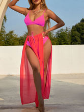 2025 V Neck Solid 3 Pieces Bikini With Long Skirt Women Swimwear Female Swimsuit Bathers Bathing Swimming Suit Beachwear Summer