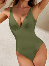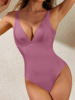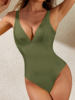 2025 V Neck Swimsuit Women One Piece Solid Swimwear Female Bathing Swim Suit Padded Beachwear Swimming Summer