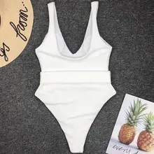 2025 White Ribbed Women Swimwear One Piece Swimsuit Female Bather High Cut Monokini Rings Belt Bathing Suit Swim Bodysuit