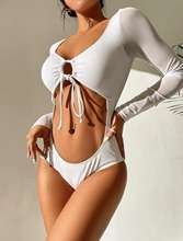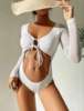 2025 White Swimsuit One Piece Solid Long Sleeve Swimwear Women Bathing Suit Female Cut Out Swimming Summer Beachwear Bodysuit