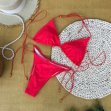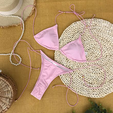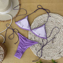 2025 Women’s Lace-up Halter Split Bikini Set Adjustable Bathing Suit Beachwear Solid Rope Two-Piece Swimwear