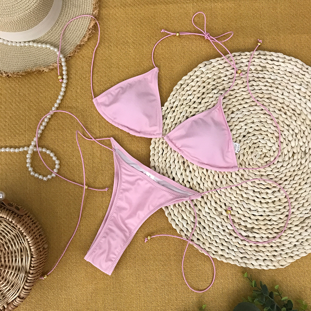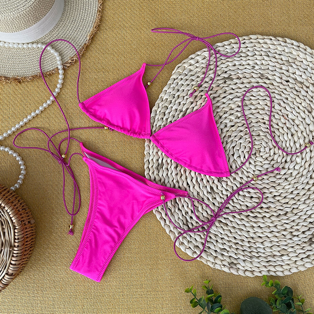2025 Women’s Lace-up Halter Split Bikini Set Adjustable Bathing Suit Beachwear Solid Rope Two-Piece Swimwear