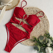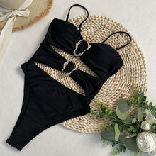 2025 Women’s One Piece Swimsuit Hollow Metal Buckle Tight Bikini Set Solid Adjustable Bathing Suit Beachwear