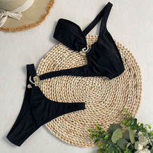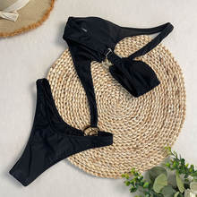 2025 Women’s One Piece Swimsuit Hollow Thong Metal Bikini Set Solid Halter Neck Bathing Suit Beachwear